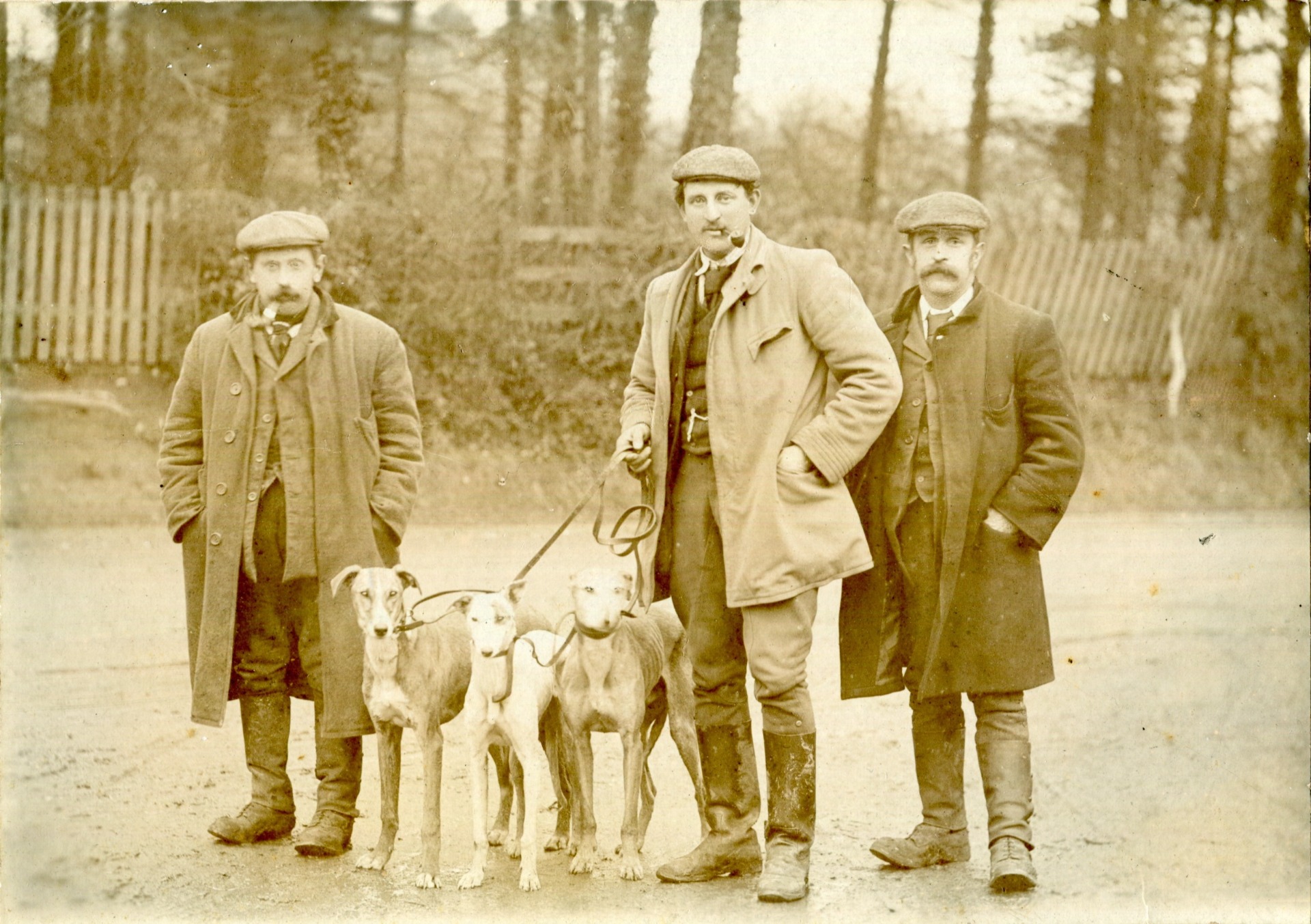 Greyhounds were undoubtedly bred and kept by many Forncett families. A group of three greyhounds is shown in a photo of Gerard Chapman (who lived at Hill Farm, Forncett End) and two other gentlemen taken around 1901. Gerard and his brother, Thomas, were both members of the Forncett Coursing Club.