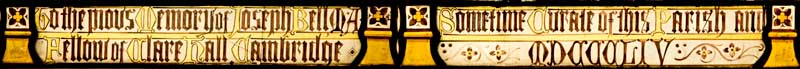 Rev. Joseph Bell was born in Cumberland in 1815. He studied at Clare College, Cambridge from 1833 to 1840 and then came to Forncett as curate to the Rev. Thomas Jack. When Rev. Jack died in 1844 (at the age of 74), his place was taken by the Rev. John Doudney Lane who was just three years older than Joseph Bell. Doudney Lane had studied at St. Johns, Cambridge from 1832 to 1839, so the two probably knew each other. Tragically, John Doudney Lane died of tuberculosis in 1846, aged just 34: a plaque to his memory can be seen in St. Peter's church.