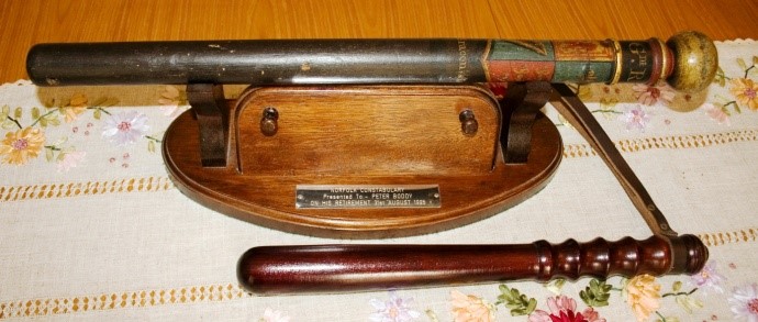 Policemen serving locally would have received an appropriately decorated truncheon similar to the one illustrated here from Bracon Ash, presented to a retiring officer. The difference in size of the 19th to the mid-20th century one is quite striking.