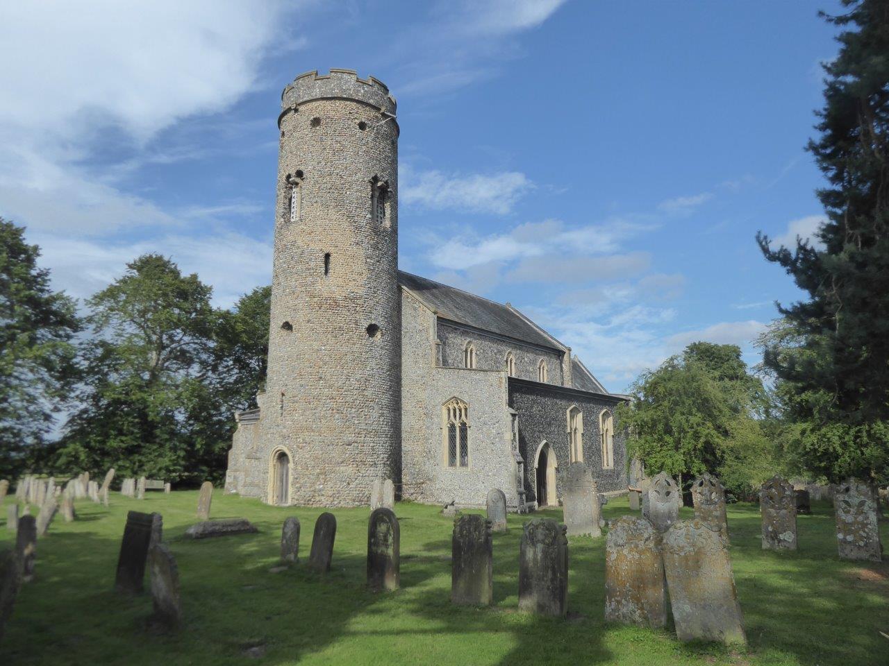 St Peter's is the parish church of Forncett. It was originally built circa 1000 AD and the great Saxon round tower remains from that date, complete almost to the top, and considered to be the best Saxon round tower in England. Only the parapet is relatively modern. The main building is of later, mainly 14th and 15th century date. There is a magnificent north porch with the symbols of St Peter and St Paul, perhaps indicating the medieval dedication of the church. Unusually, there is a west door into the tower which has a unique ancient staircase and the fine ring of six bells.